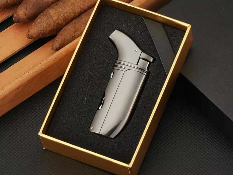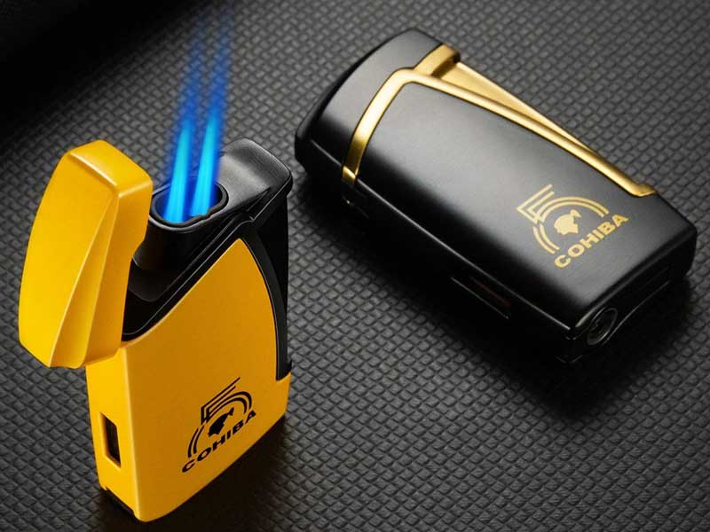 Loại bật lửa: Bật lửa khò xì gà 2 tia dùng Gas đánh lửa bằng IC